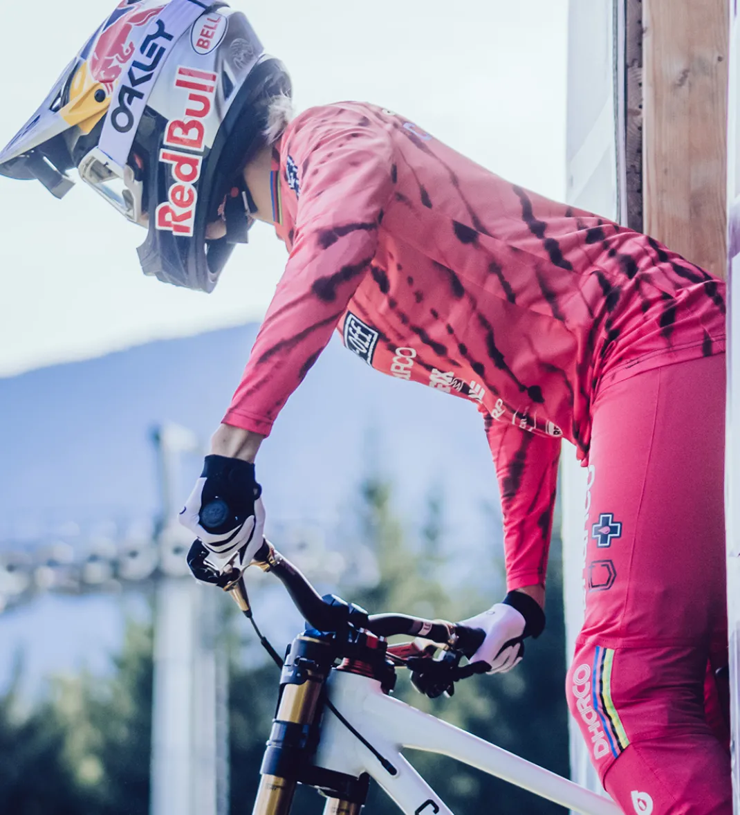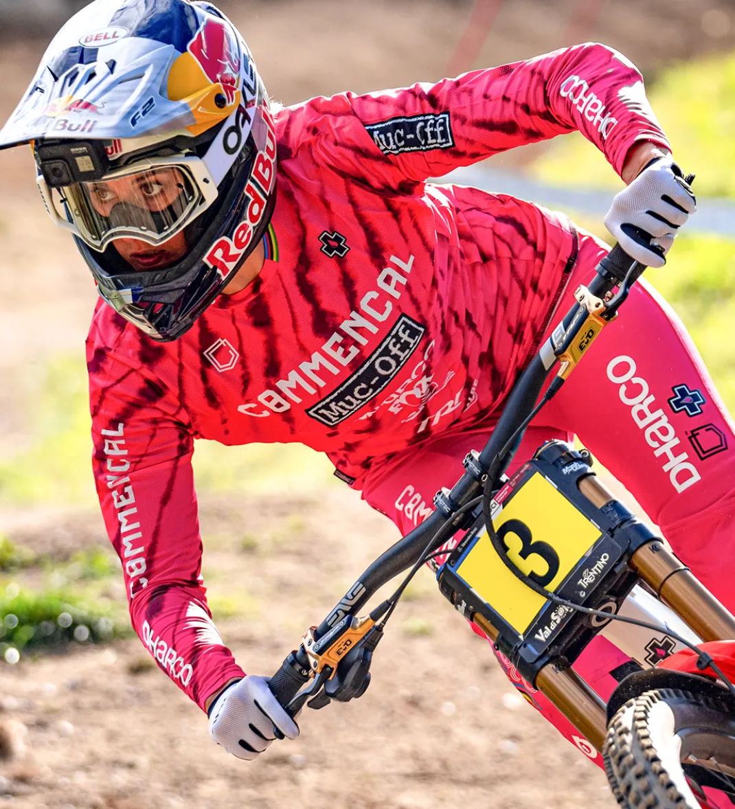 Created for the Commencal Muc-Off team to race inthe Val Di Sole World Cup, this stunning replica jersey ismade for race day. The unique blend of electric pink and orange, almost like a gorgeous sunset, are paired with a new light weight fabric ‘FTF fabric technology’ and a new slim race fit. The design was made fromhand painted watercolour stripes by artist Meryl Pardoen,colour remixed by the DHaRCO design team. Wear it and stand out from the crowd.