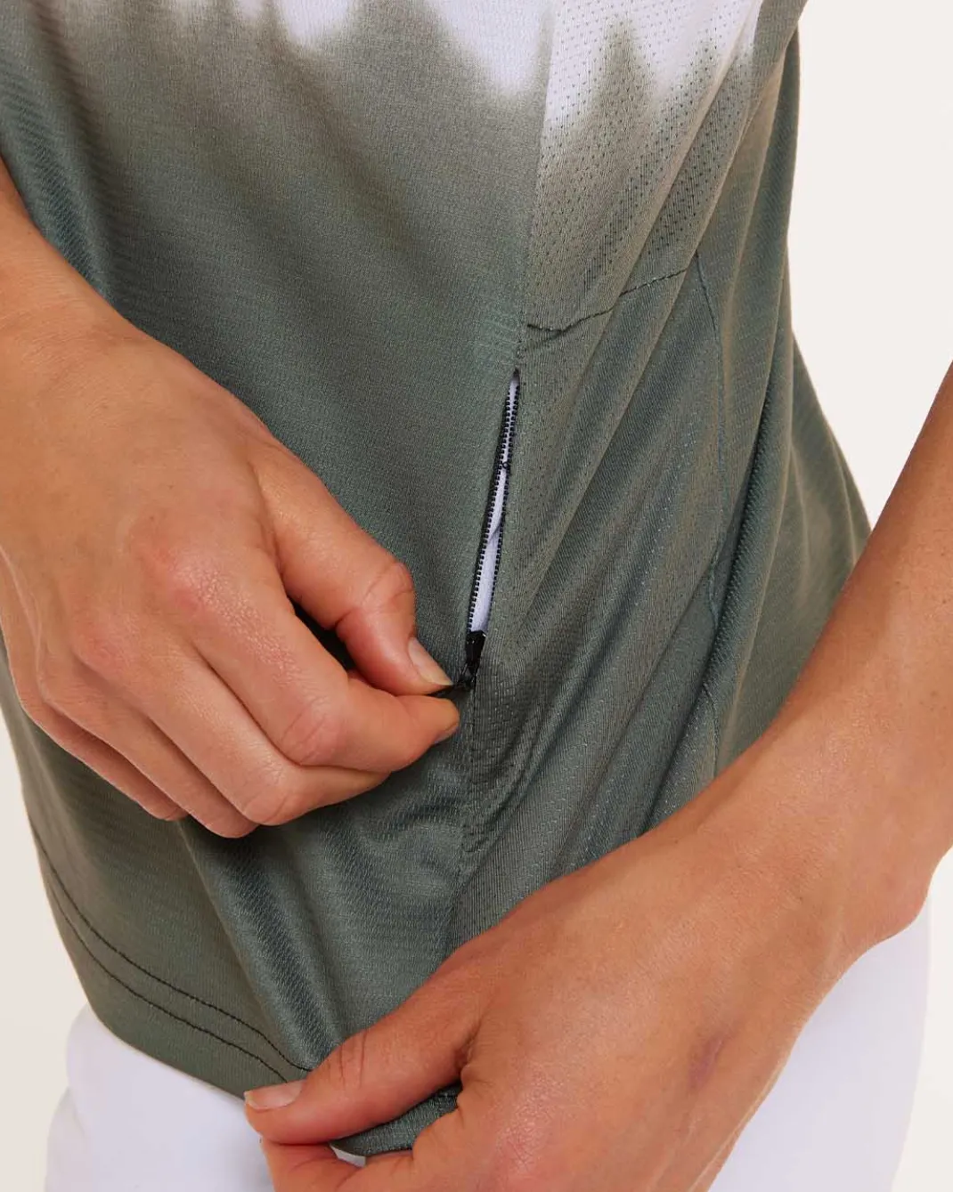 Made from 100% recycled polyester. The fabric is breathable and wicking, but nice and resistant to hold up on the trails.